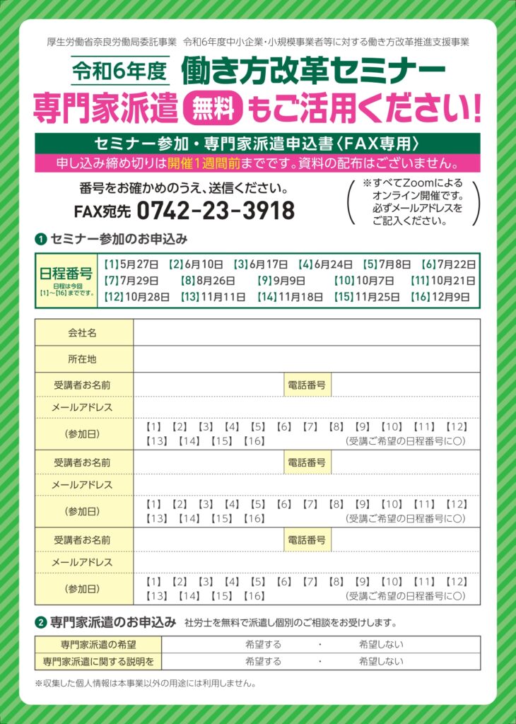 中小企業事業主の皆様へ 奈良働き方改革推進支援センター主催セミナー、専門家派遣等のお知らせ